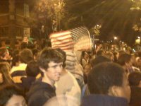 Johanna: It was truly FABULOUS. I watched the election coverage at a friend’s house, with about ten other people. We were tuned into Jon Stewart and Stephen Colbert. When Stewart just announced that Obama had won, we jumped out of our seats cheering and clapping. We heard some cheers coming from outside the house and went outside on the landing to see other families coming out of their homes and cheering. When Henri and I drove home to Berkeley, all cars on the road were honking in joy and when we finally got into bed later that night, we could hear the cheers of UC Berkeley students, who had poured into the streets. In fact, a Cal freshman that I know told me that she was getting into bed in her dorm room at around 11 p.m. and when she found out fellow students were headed out, she said, “This is a once in a lifetime opportunity,” and joined them. I’ll attach a snapshot she took on Telegraph Ave. at midnight.